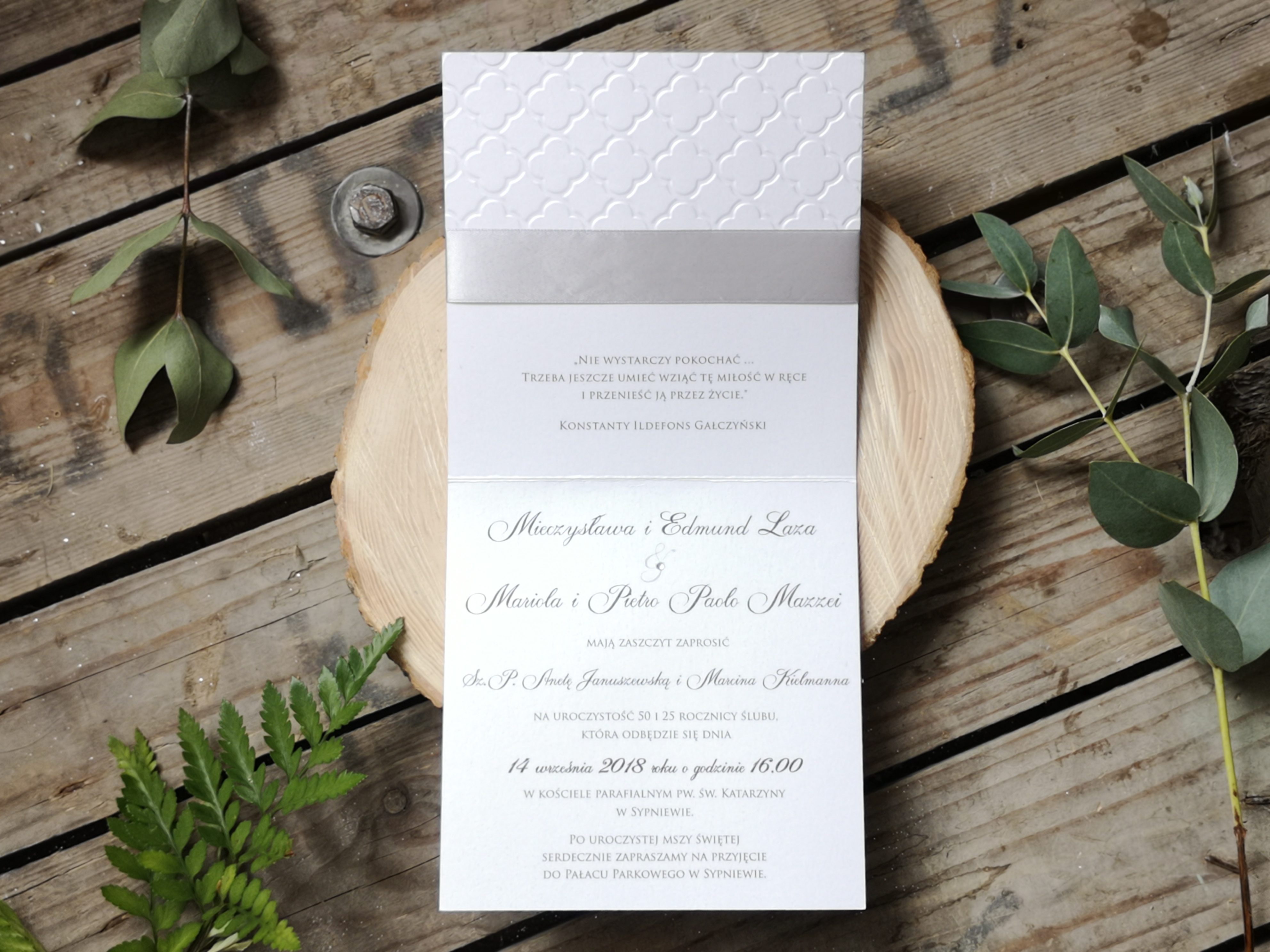 Propozycja ręcznie wykonywanych zaproszeń, tworzonych z materiałów o najwyższym standardzie.