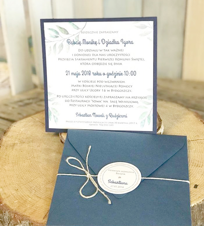 • Zaproszenie z karty w ozdobnej kopertce