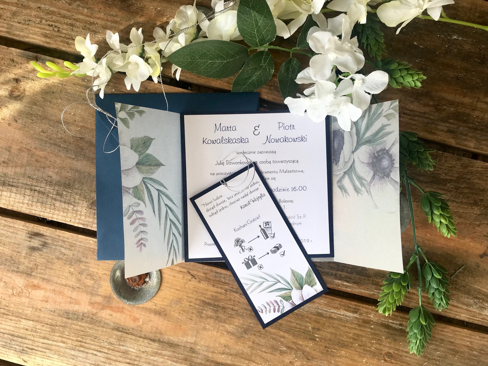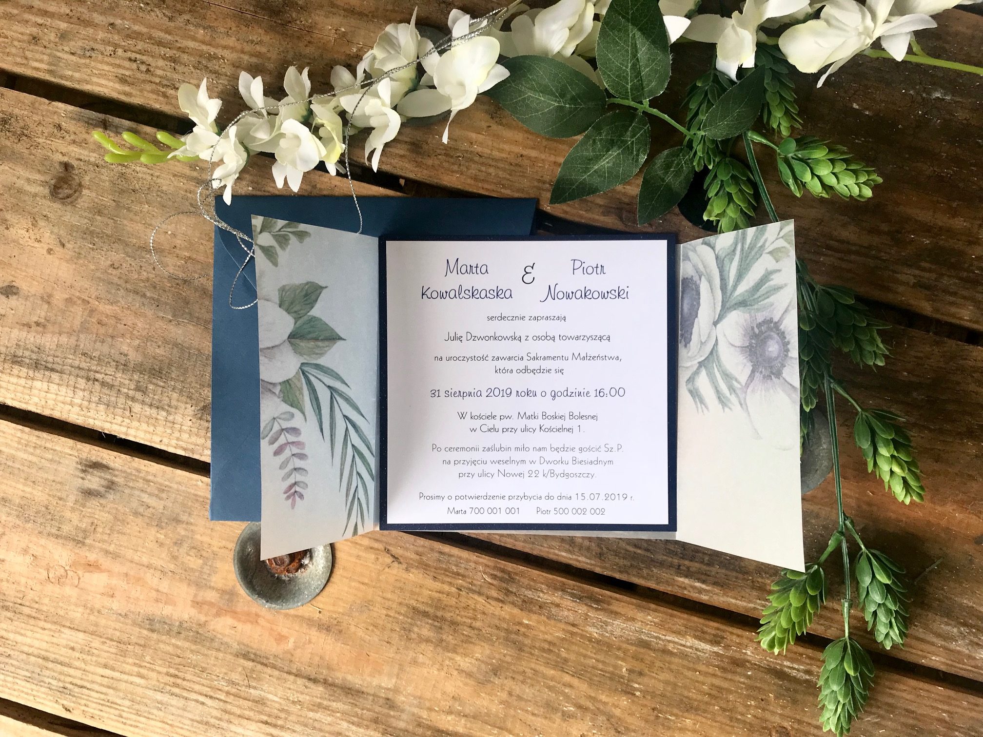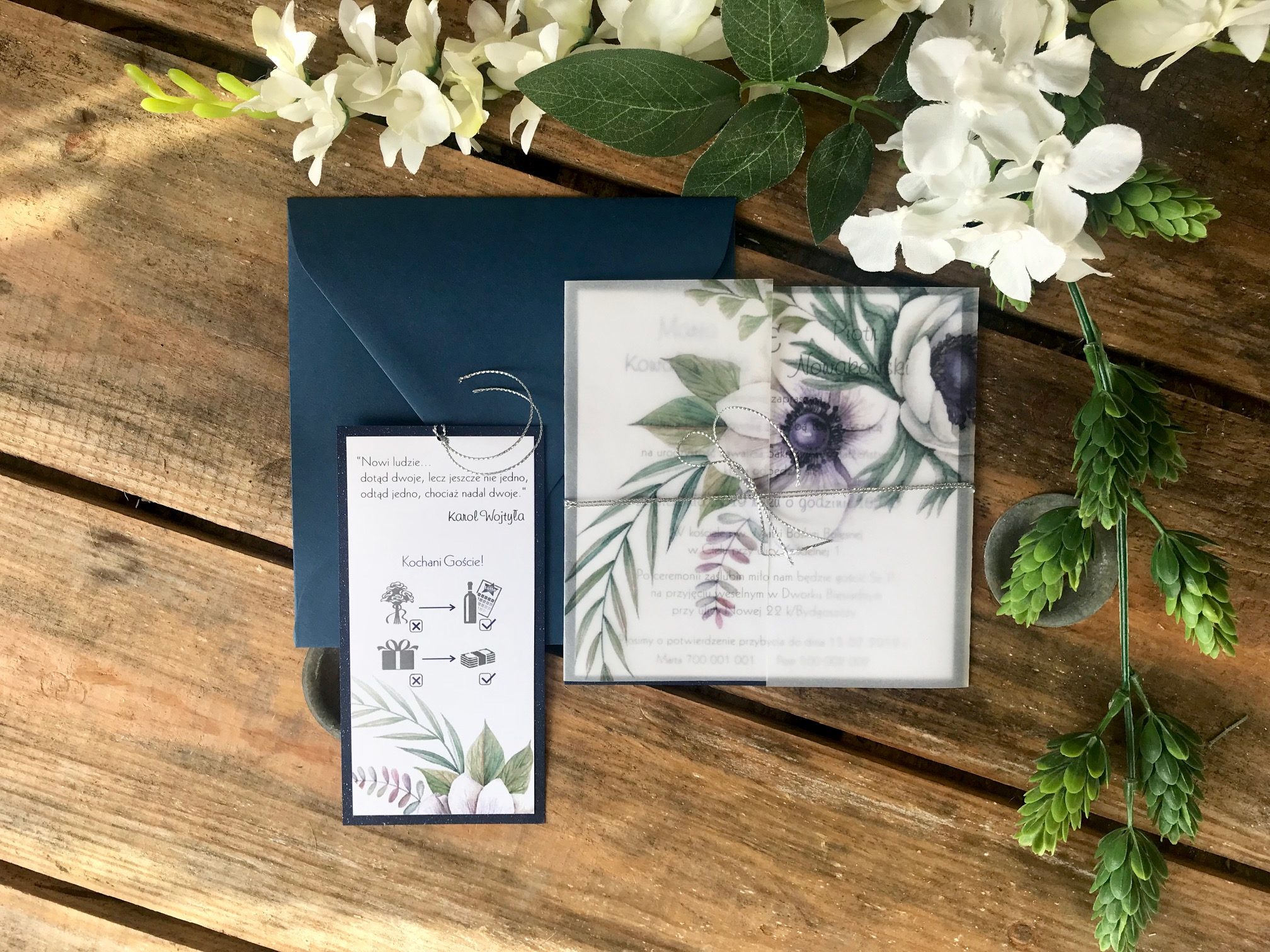 „Granatowe z kalką” to propozycja ręcznie wykonywanych zaproszeń, tworzonych z materiałów o najwyższym standardzie.