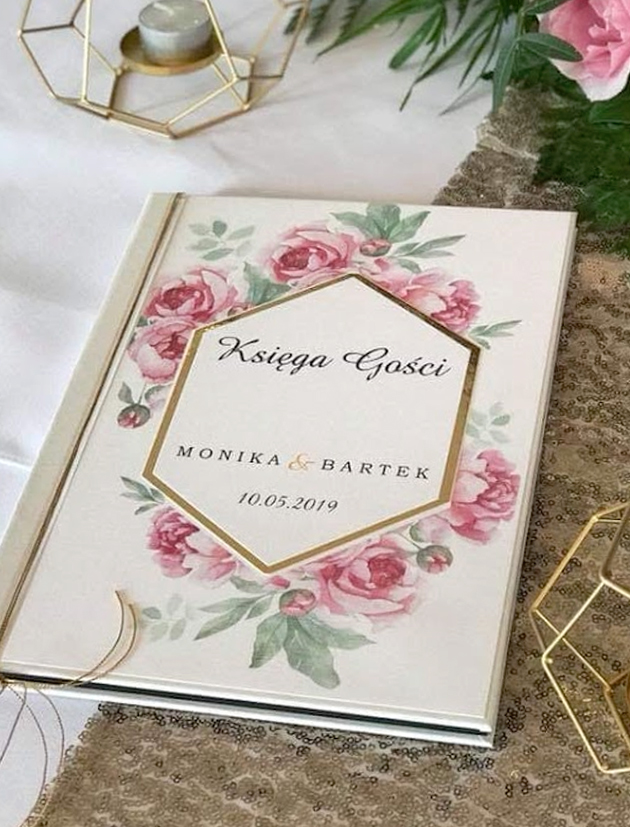 Księga Gości „Geometric Gold 1” nawiązująca do serii zaproszeń „Geometric Gold”