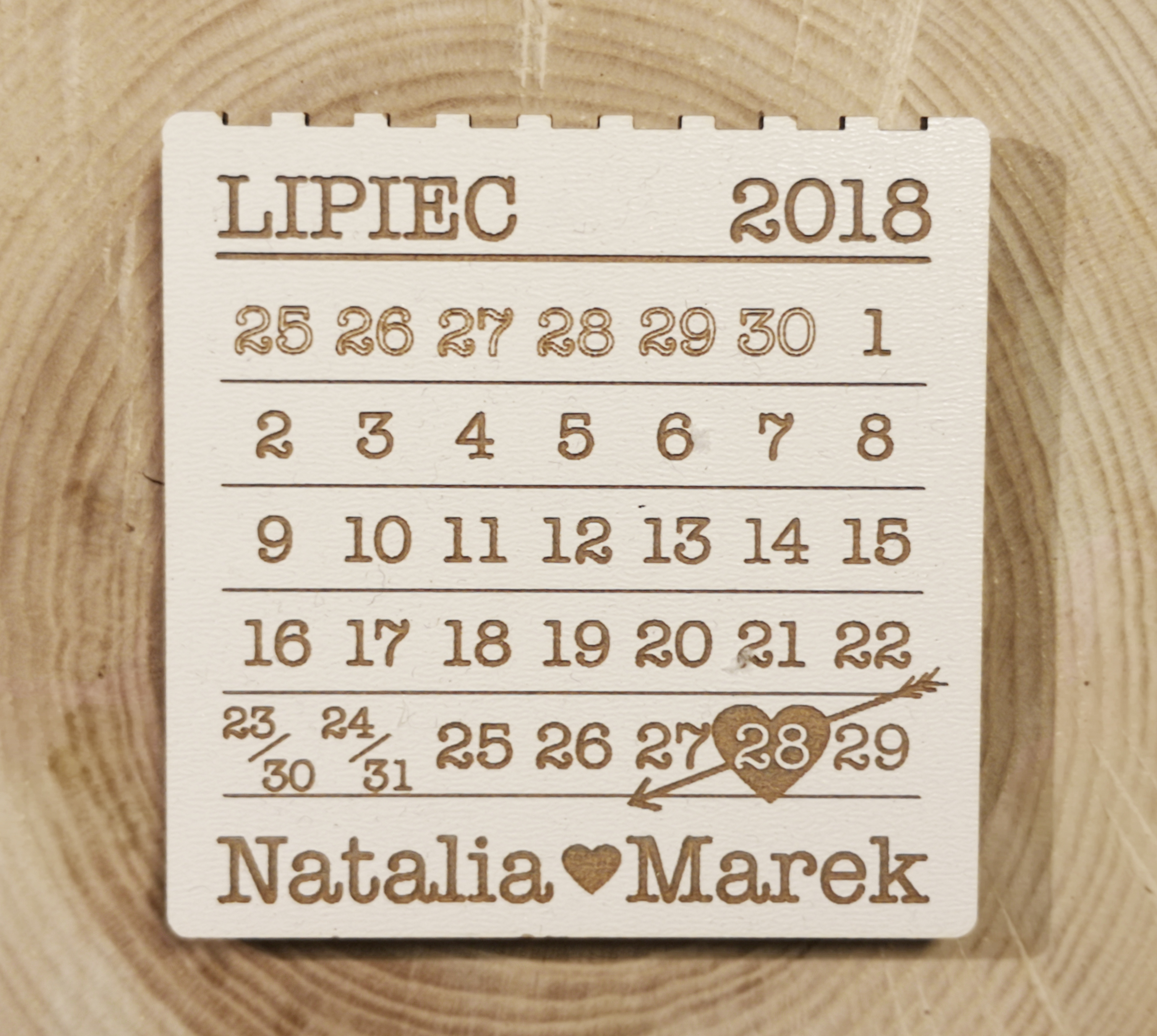 możliwa modyfikacja: data, imiona, kolorystyka naturalne drewno lub jak na fotografii białe