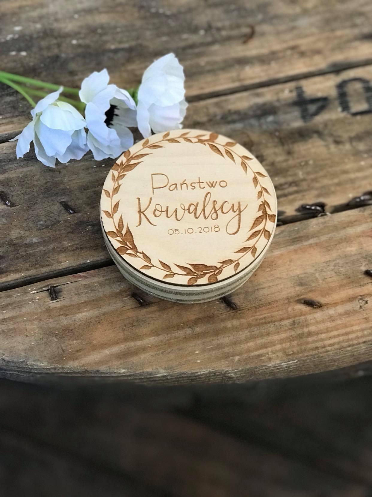 Pudełeczko okrągłe z poduszką i grawerem eko