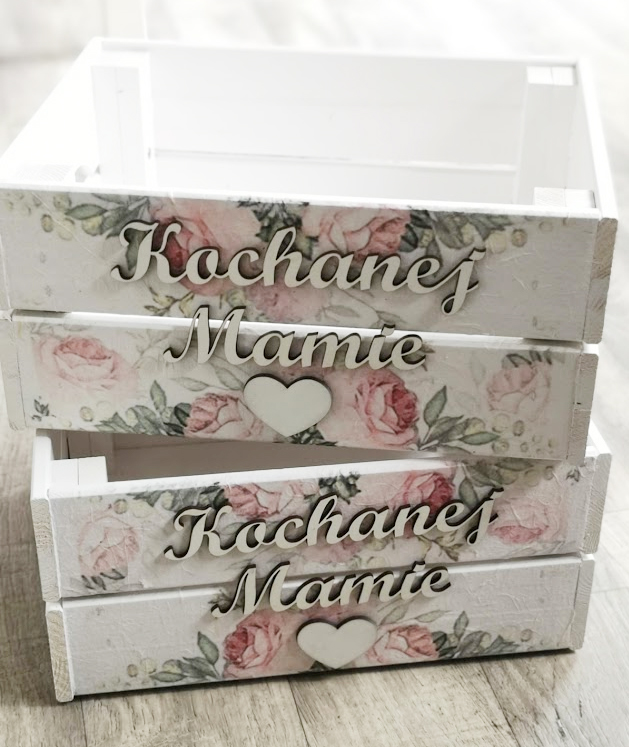 Skrzynka na podziękowania dla rodziców zdobiona techniką decoupage