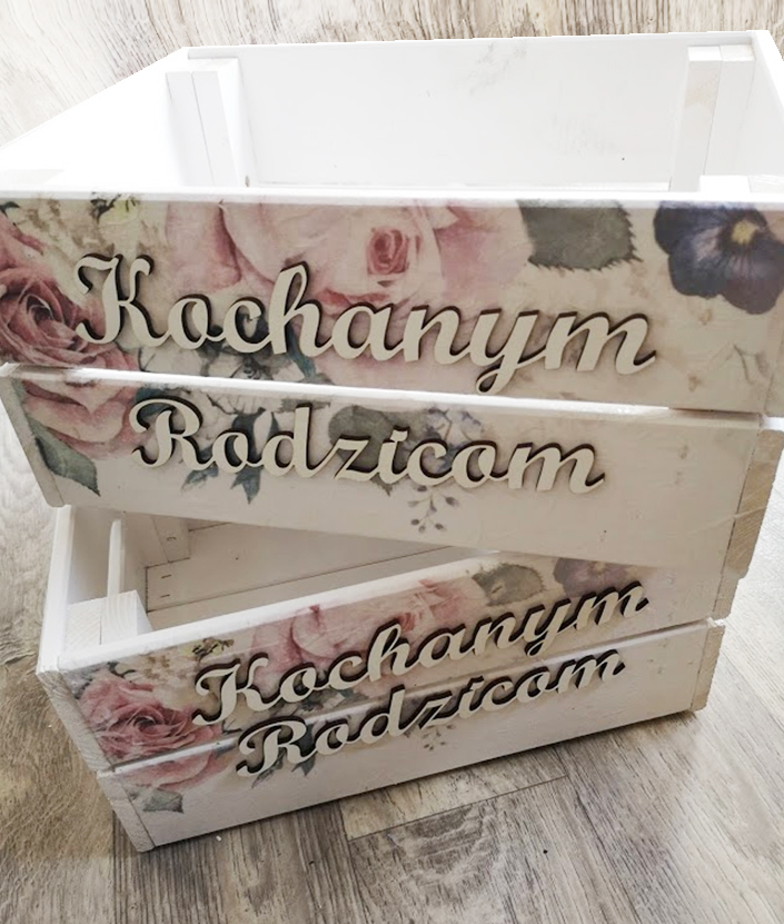 • drewniane napisy: Kochanym Rodzicom lub Kochanej Mamie, Kochanemu Tacie na życzenie!