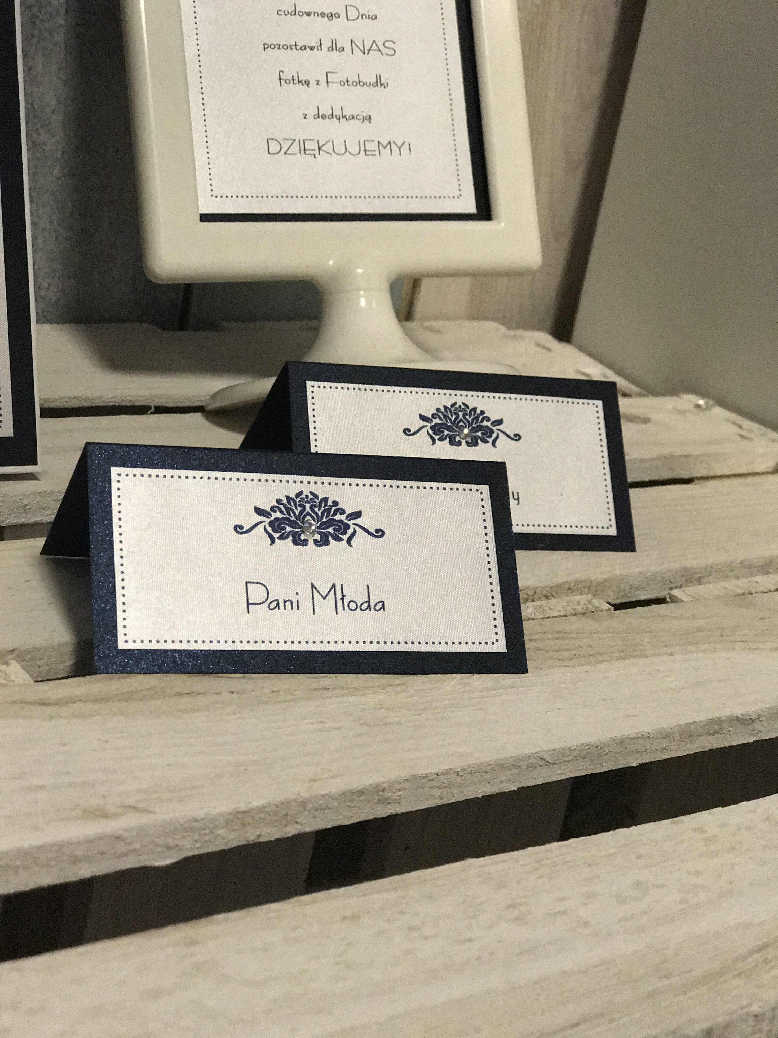 Winietki podłużne 9×4,5cm po złożeniu w dowolnej aranżacji dopasowane do każdej z serii zaproszeń ślubnych. Opcja z podklejaną kartką na każdym papierze.