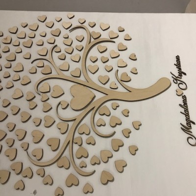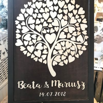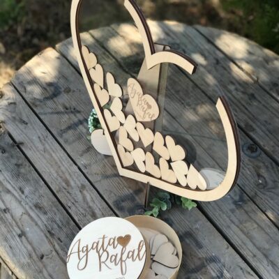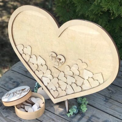 Księga gości drewniane serca 70x50cm sklejka i orzech