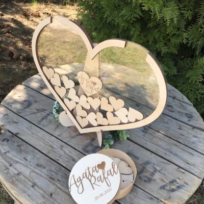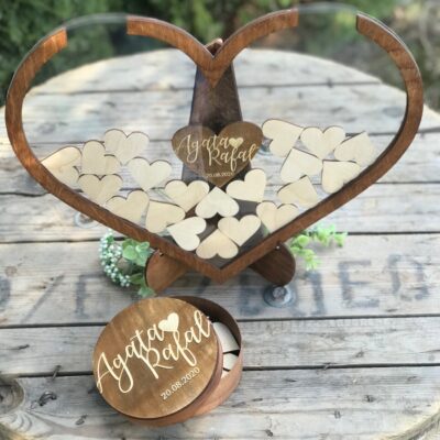 Księga gości z wrzucanymi serduszkami, przejrzysta, naturalna- 45 serduszek