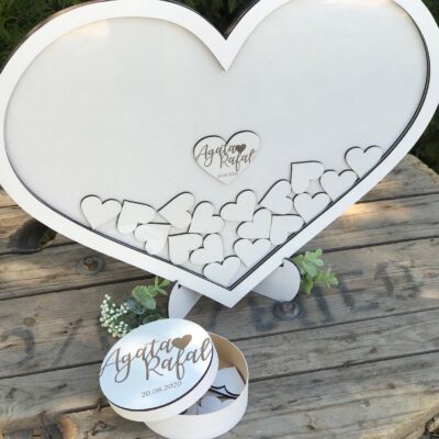 Księga gości z wrzucanymi serduszkami, biała- 70 serduszek